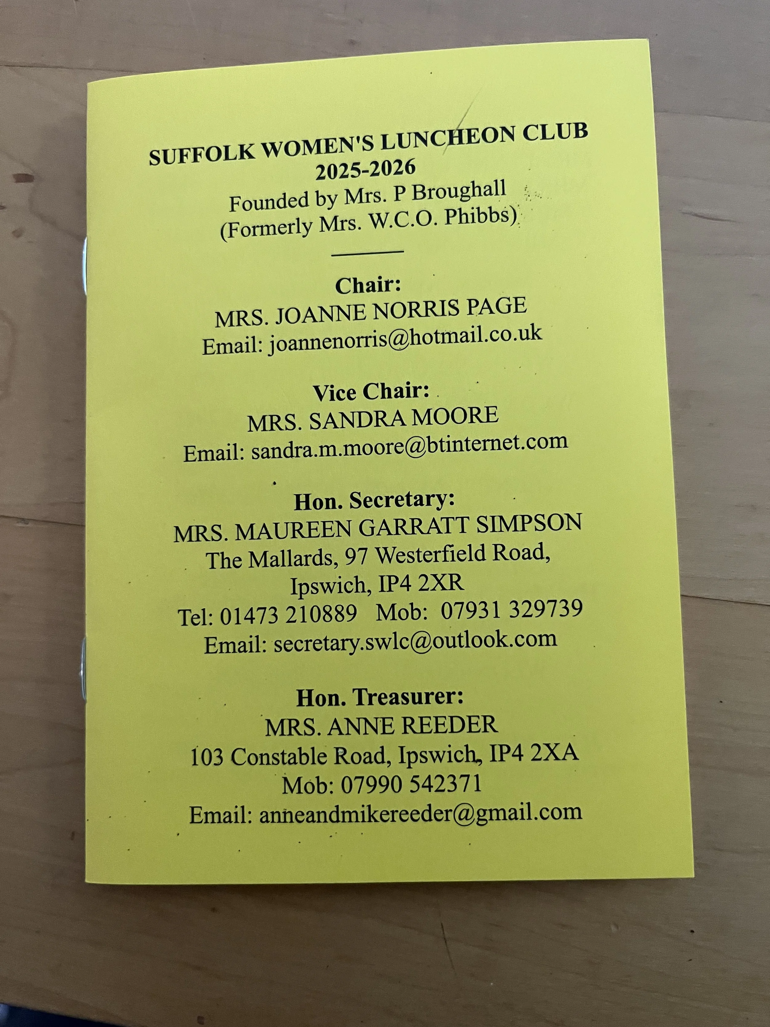 Suffolk Women’s Luncheon Club now takes a. break until we meet again on the 8th October 2025 which, as I write at the tail end of September, is happily nearly with us….